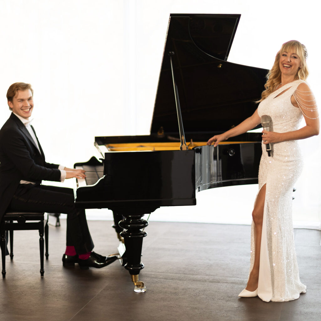 Mit einem abwechslungsreichen Repertoire der größten Pop-Hits der 70er, 80er, 90er bis heute – modern und funky verpackt! Wer gerne Schlager und Oldies dabeihaben möchte, kann den Brautverzug statt dem Pianisten buchen!